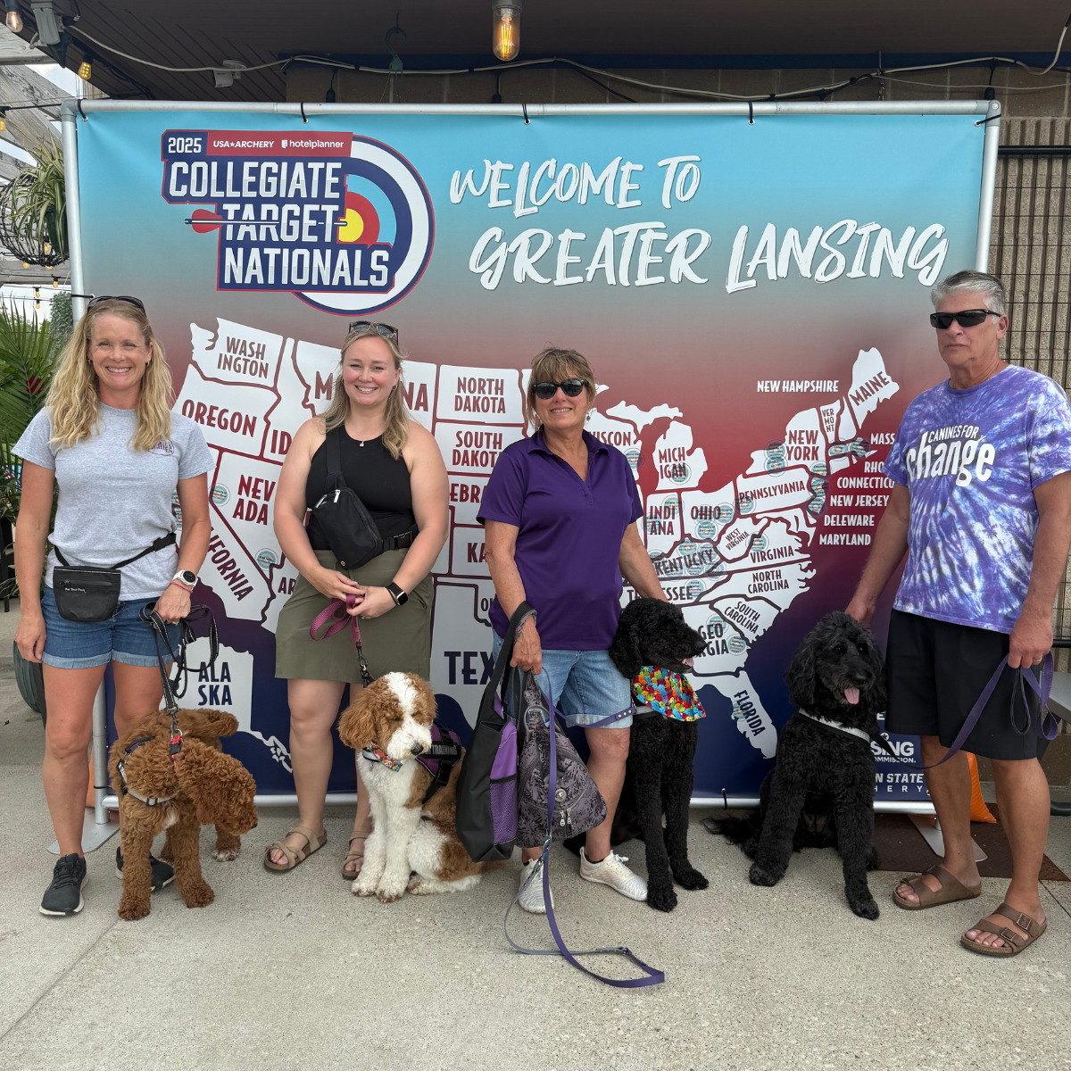 USA Archery Collegiate Target Nationals – Huge thanks to the Lansing Sports Commission for inviting us! Our dogs loved meeting the collegiate archers—and we were inspired by the athletes’ energy and focus.